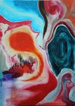 2012Gemengde techniek op doek, vrouw geabstraheerd, 60 x 80 cm.